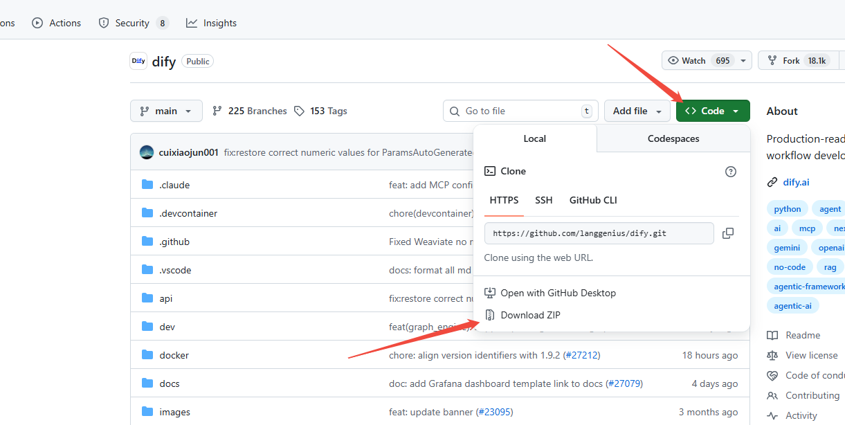 前往GitHub下载Dify源码压缩包: