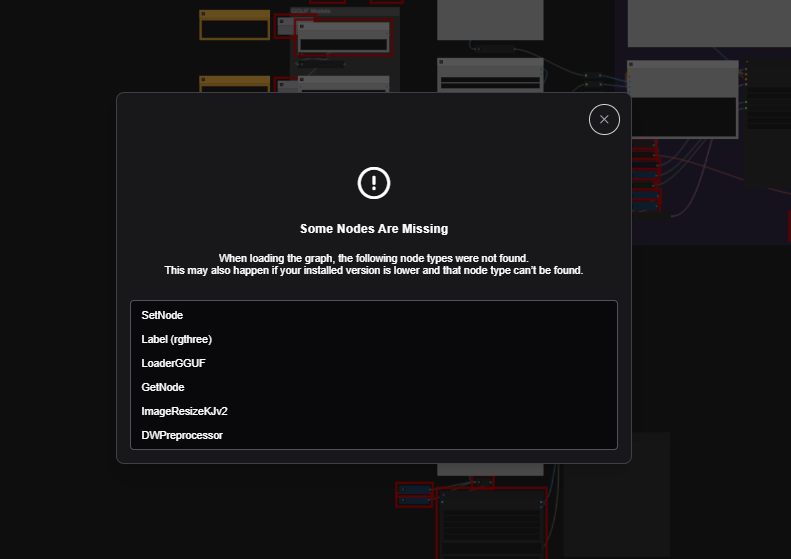 如果加载工作流时缺少某些节点,ComfyUI 会提示。