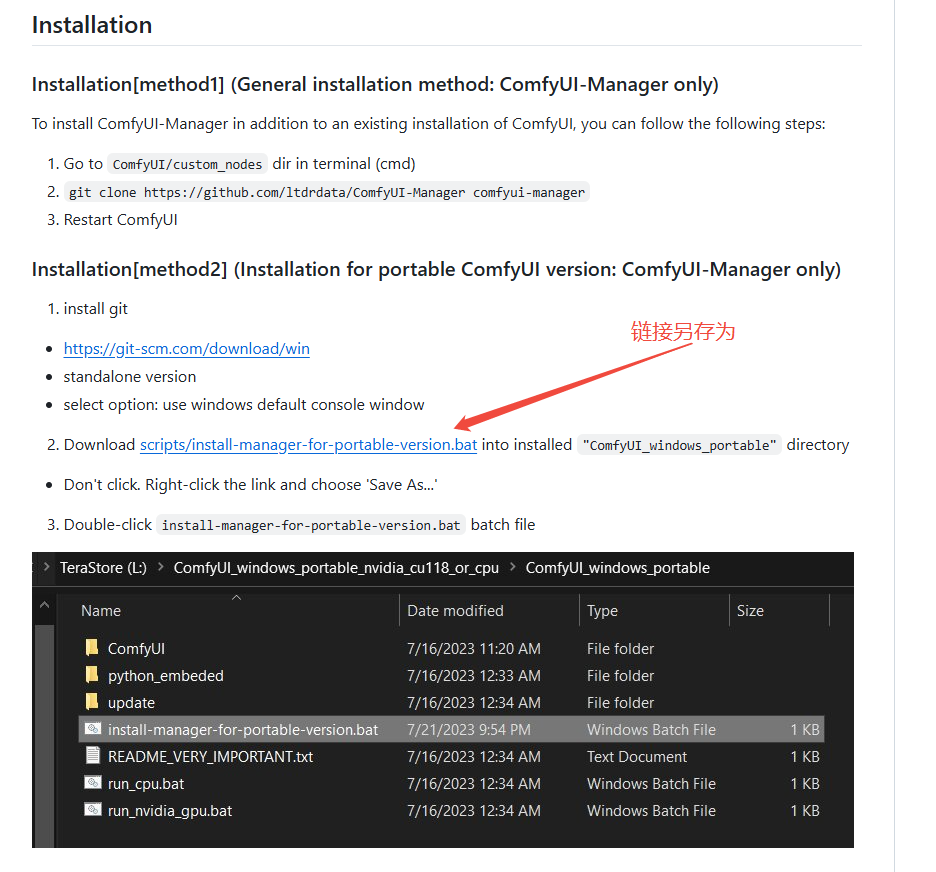 右键点击这个链接,选择 链接另存为…,将其保存到你 ComfyUI 的根目录(与 run_nvidia_gpu.bat 一个文件夹)。