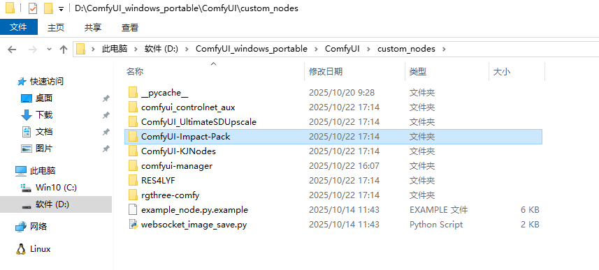 执行完成后,会在 custom_nodes 文件夹中生成一个新的插件目录。