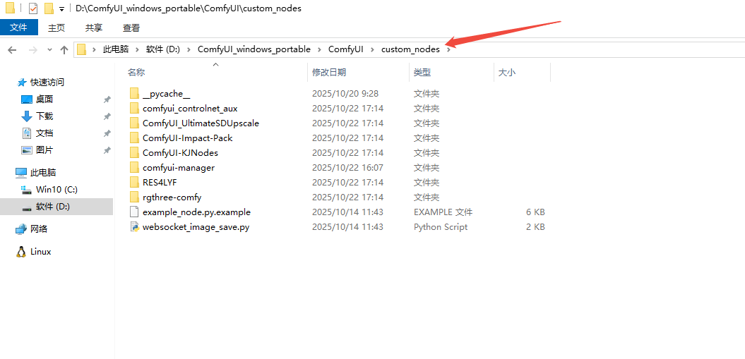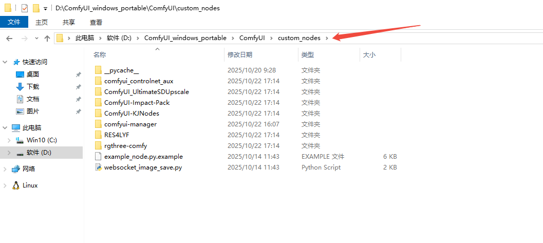 找到你的 ComfyUI 安装路径下的 custom_nodes 文件夹。
