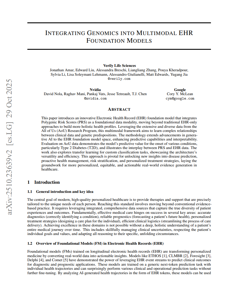 通过将多基因风险评分(PRS)嵌入电子健康记录(EHR)基础模型,他们打造出了全球首个基因、病历、AI三合一系统。