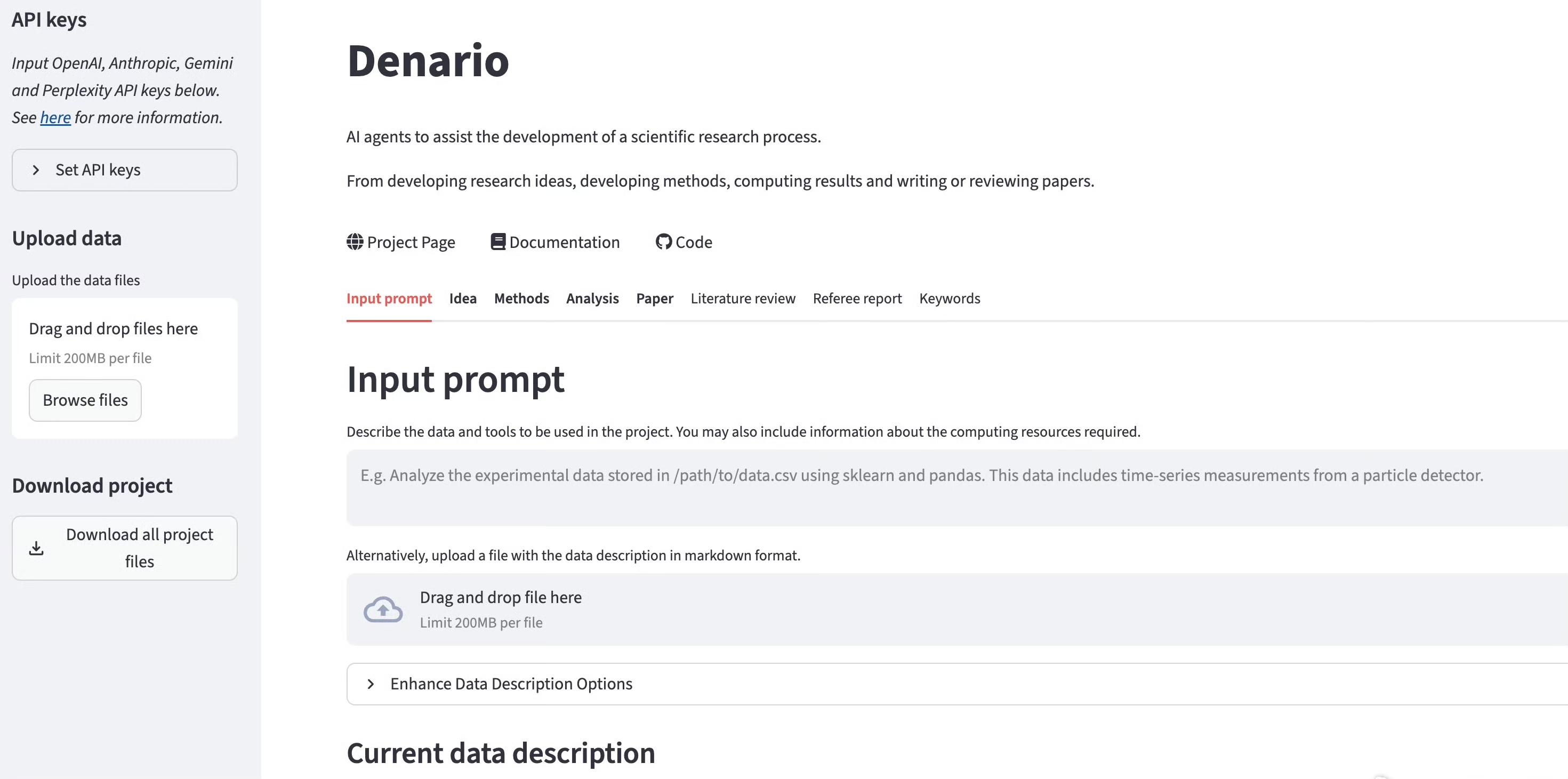 这一步相当于告诉 Denario:“我想研究什么,用什么方法来研究”。
