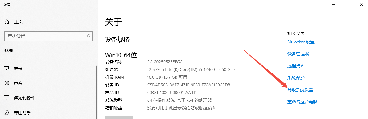 右键此电脑 → 属性 → 高级系统设置