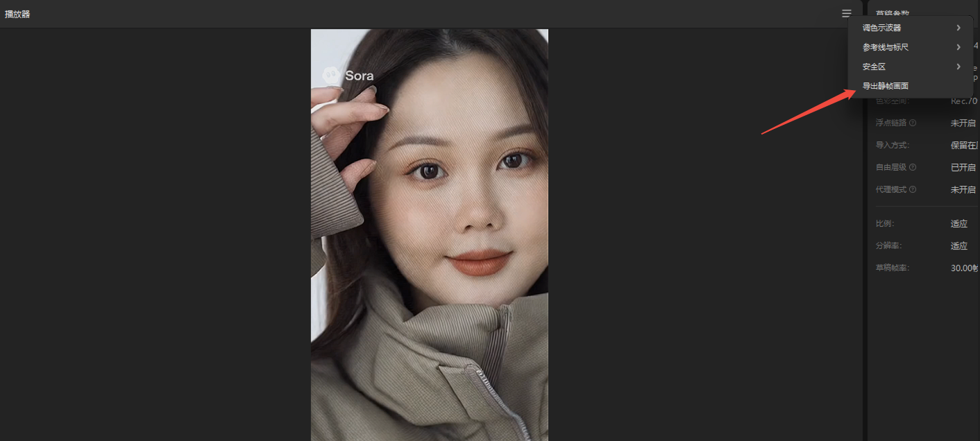 1️⃣ 将生成的视频导入剪映,选择人物出现的那帧,导出静帧。