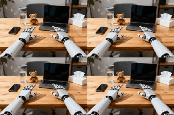 而当给了LongCat-Video一张机器人正在工作的图片后,它直接立马生成了机器人“居家办公”的日常vlog。