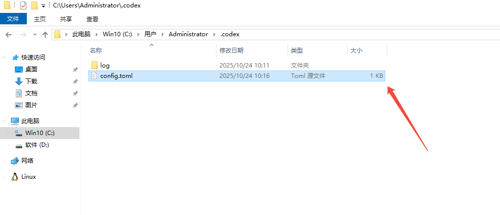 接着找到codex的文件夹,打开配置文件,没有的话可以新建一个