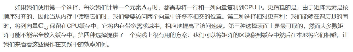 直观来说,这表明选择大型的小批量$\mathcal{B}_t$将是普遍可行的。然而,经过一段时间后,与计算代价的线性增长相比,标准差的额外减少是微乎其微的。在实践中我们选择一个足够大的小批量,它可以提供良好的计算效率同时仍适合GPU的内存。下面,我们来看看这些高效的代码。在里面我们执行相同的矩阵-矩阵乘法,但是这次我们将其一次性分为64列的“小批量”。