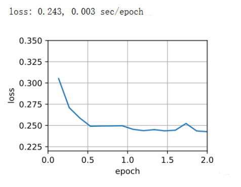 print(f'loss: {animator.Y[0][-1]:.3f}, {timer.avg():.3f} sec/epoch')