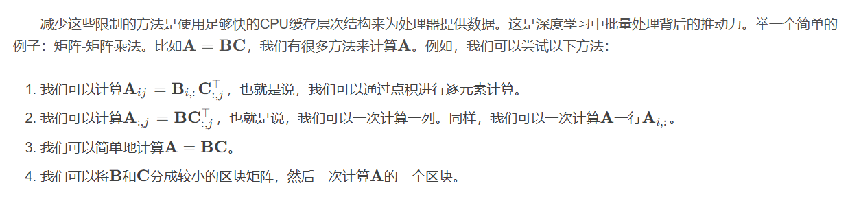 - 由于减少了深度学习框架的额外开销,使用更好的内存定位以及CPU和GPU上的缓存,向量化使代码更加高效。