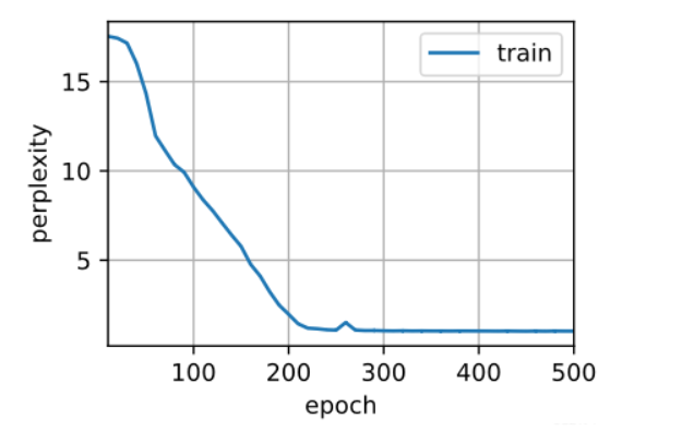 d2l.train_ch8(model, train_iter, vocab, lr*1.0, num_epochs, device)