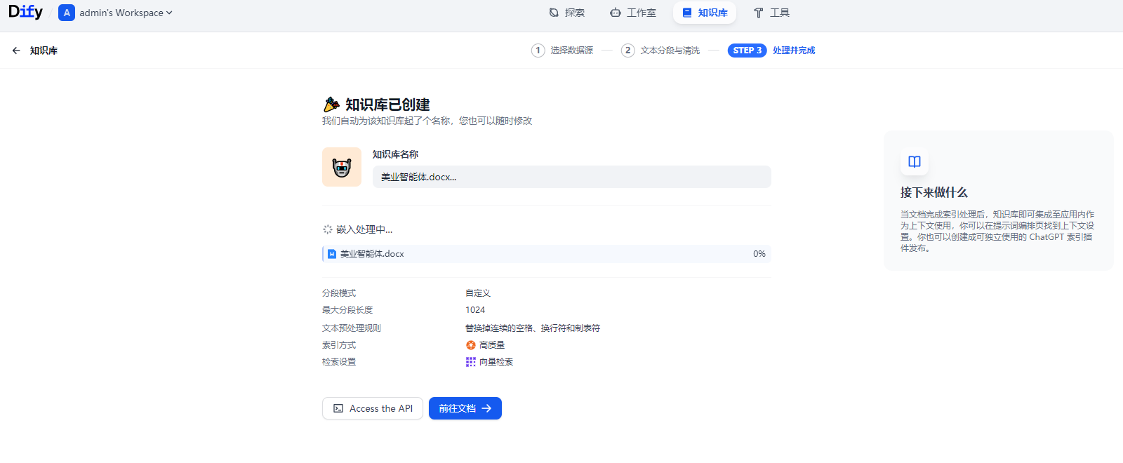 在 Dify 中,创建知识库是让 AI 智能体能够基于特定领域知识进行准确回答的关键步骤。以下为你详细介绍创建知识库的具体方式: