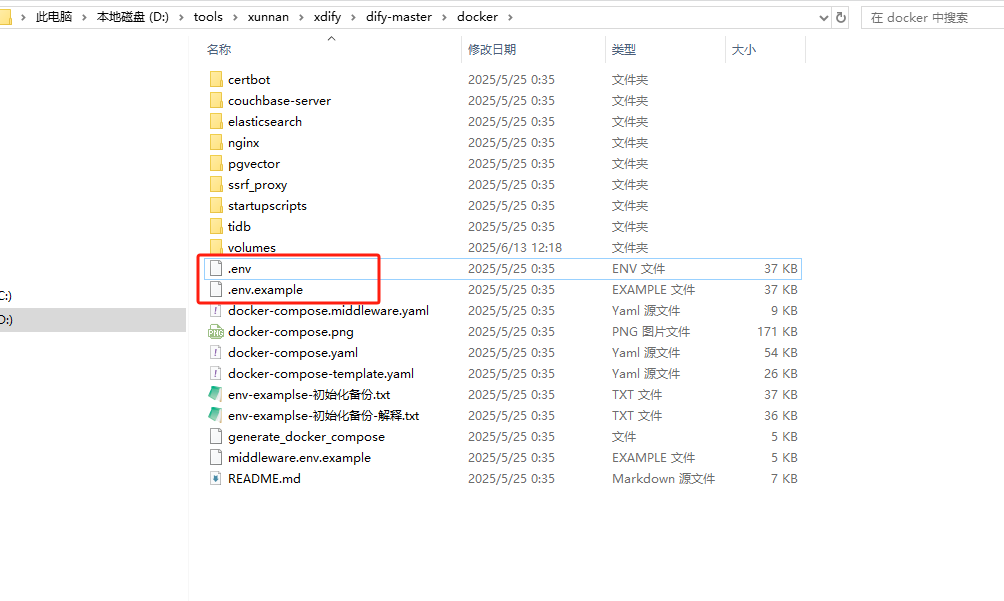 创建.env 文件:进入 Dify 项目的根目录,你会看到一个.env.example文件,这是环境变量的示例文件。