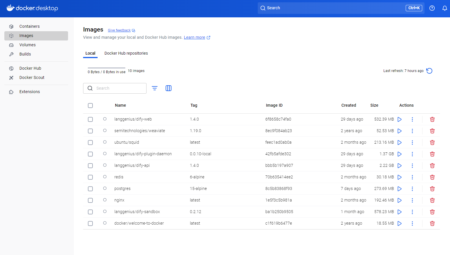 配置完成后,可以通过执行docker info命令,查看输出中是否包含配置的镜像地址,以验证镜像源是否生效。然后重新拉取 Dify 镜像,先停止并移除由docker-compose up启动的容器、网络、挂载卷等资源: