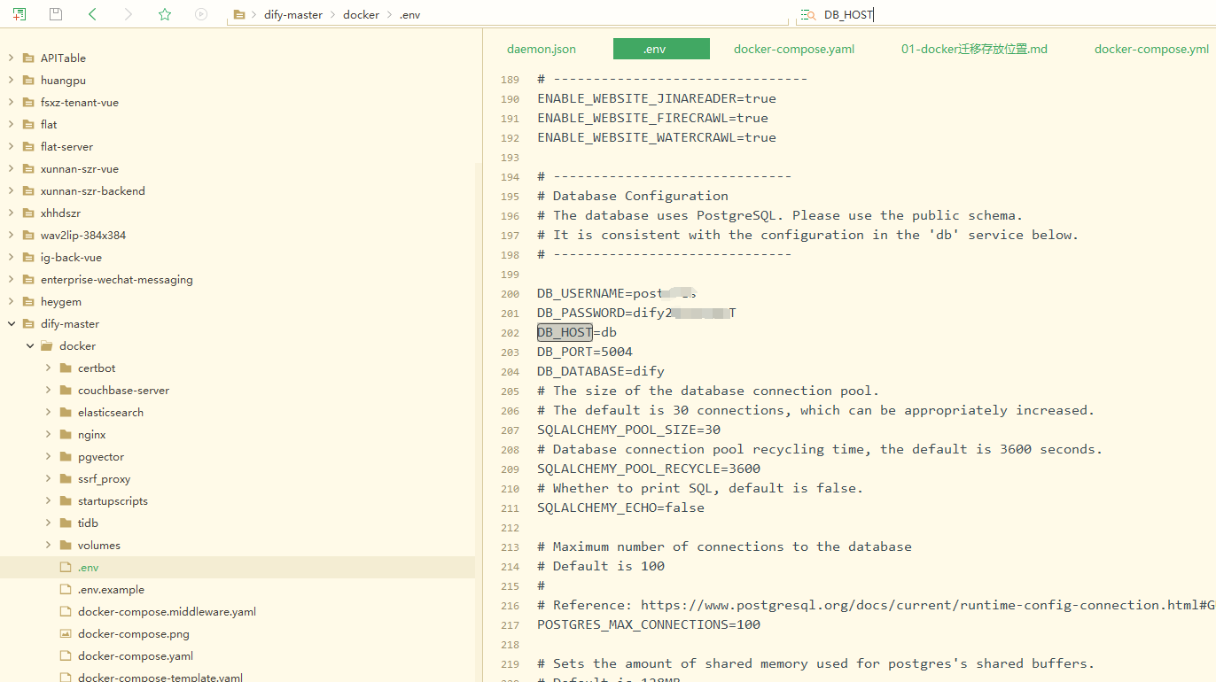 配置数据库:在.env文件中,找到与数据库相关的配置项。Dify 默认使用 SQLite 数据库,如果你希望使用其他数据库,如 MySQL 或 PostgreSQL,需要修改相应的配置。例如,如果要使用 MySQL 数据库,