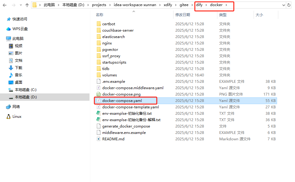 这个目录包含了docker-compose.yaml文件,这是 Docker Compose 的配置文件。在终端中执行命令