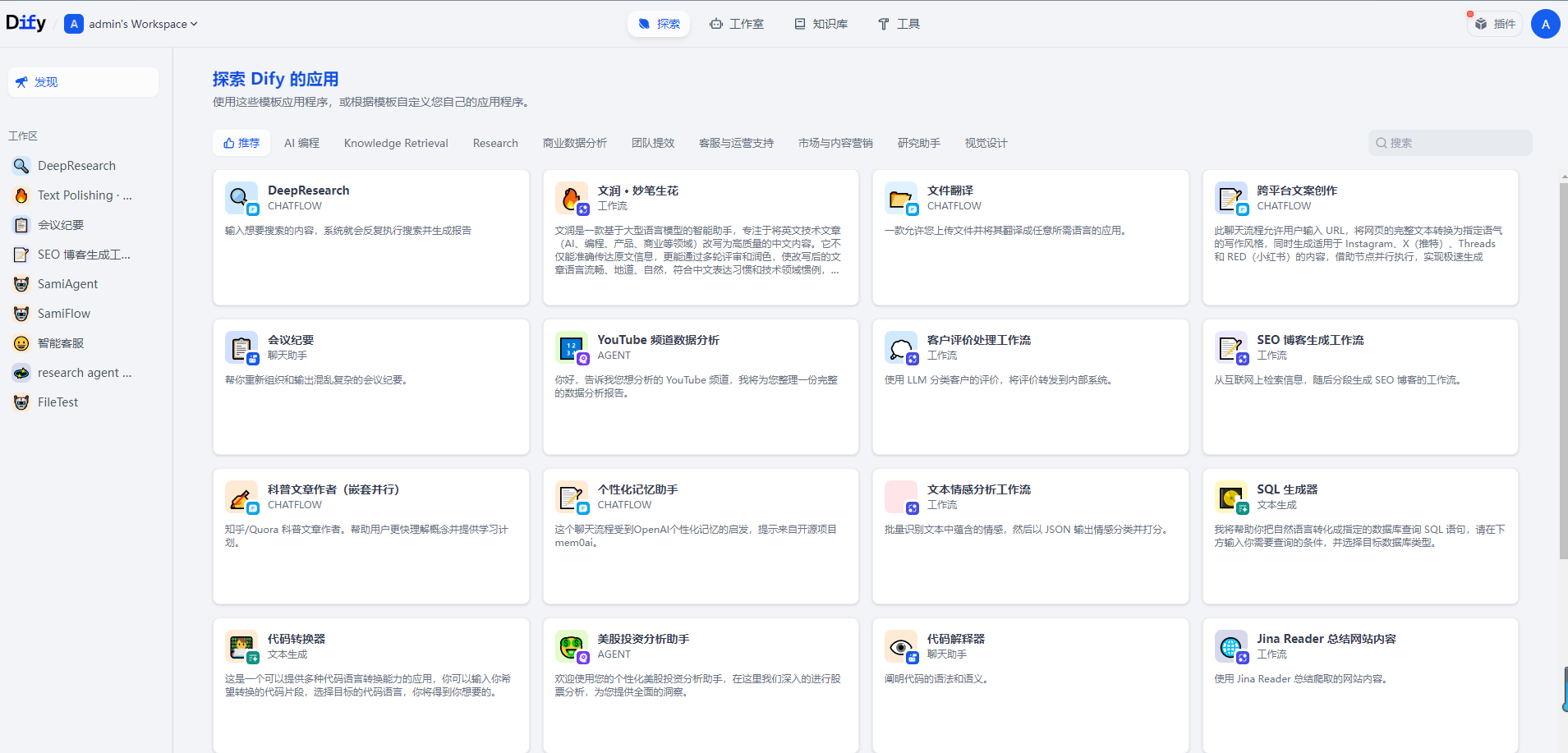 强大的生态系统:虽然 Dify 相对较新,但其开源性质吸引了众多开发者的参与和贡献,逐渐形成了一个活跃的生态系统。在这个生态系统中,开发者可以共享代码、插件、模板等资源,相互学习和交流,共同推动 Dify 的发展和应用。同时,Dify 也积极与其他工具和平台进行集成,进一步拓展了其应用场景和功能。