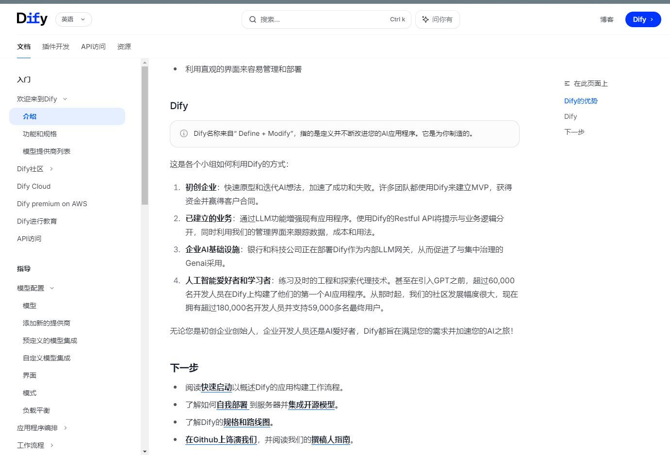 Dify 是一款极具创新性的开源大语言模型(LLM)应用开发平台,它融合了后端即服务(Backend as Service)和 LLMOps 的先进理念 ,为开发者打造了一个高效、便捷的 AI 应用开发环境。Dify名称来自“ Define + Modify”,指的是定义并不断改进您的AI应用程序。它是为你制造的。简单来说,Dify 就像是一个魔法工具箱,里面装满了各种工具和组件,开发者可以利用这些工具,像搭积木一样轻松构建出各种生产级的生成式 AI 应用。博主建议大家阅读:dify官网文档