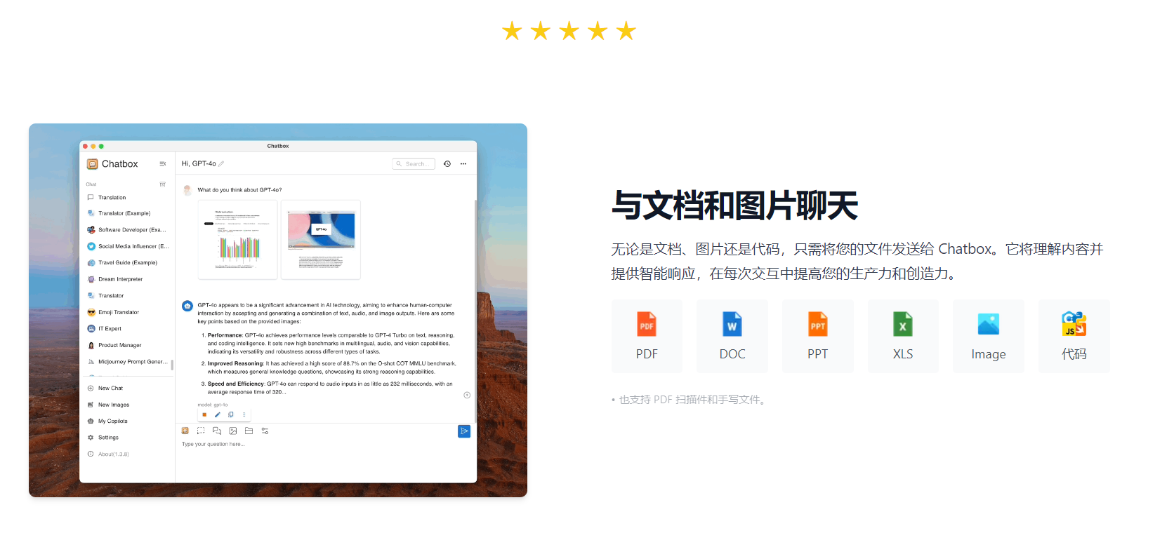 多功能集成是 ChatboxAI 的又一亮点。除了传统的文本对话,它还支持文档、图片、代码等多种类型的信息交互。这意味着,用户不仅可以与 ChatboxAI 进行日常的聊天交流,还能让它帮忙分析文档内容、解读图片信息、编写和调试代码等,真正实现了一站式的 AI 服务。