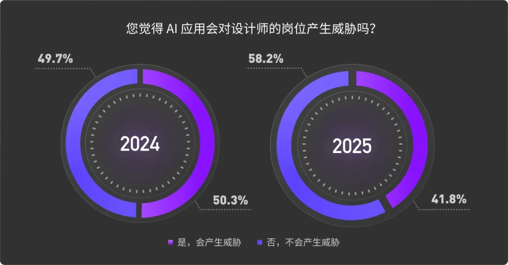 《2025设计行业AI应用趋势报告》中“64.3%的受访者感受到个人职能在延伸”的数据,恰恰印证了这种角色转变已不是个案,而是正在发生的普遍现实。职能的延伸,本质是价值的上行。