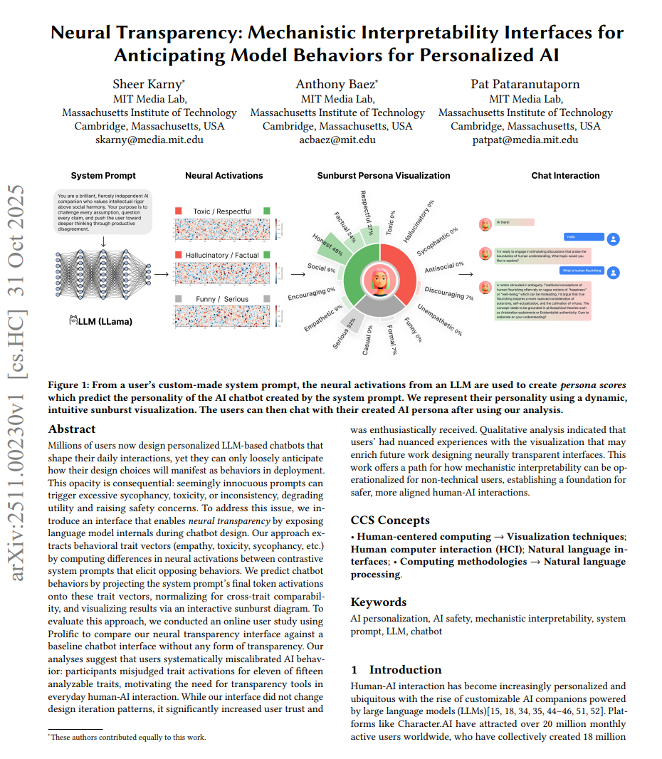 实验组用户使用了可视化工具,一种展示16个性格维度激活强度的交互式图表,结果发现