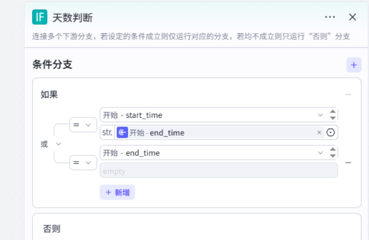 获取到天气数据后,系统需要根据查询天数的不同,采取不同的处理策略。这里我们使用条件分支功能来进行智能判断。