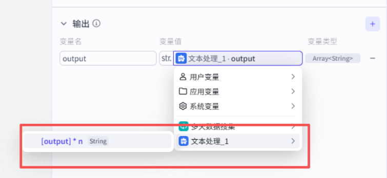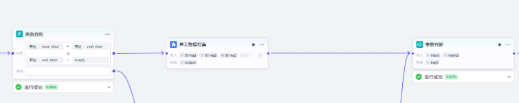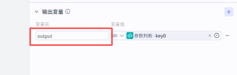 最后传输给结束节点,在结束节点设置一个变量来接收“参数判断”代码节点传输过来的结果即可
