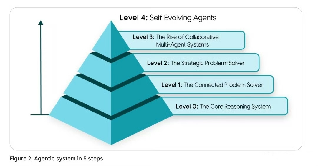 为了厘清智能体的发展脉络,Google提出了一个极具前瞻性的五层级体系,几乎可以视为企业部署AI架构的路线图: