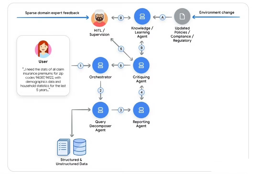 白皮书最后探讨了智能体的自我进化。Google提出了 “Agent Gym” 的概念,即一个模拟训练环境,让智能体在离线状态下进行演练、红队测试并从人类反馈中学习,从而实现“成长”。虽然目前仍处于探索阶段,但这为通向更高级别的自主智能指明了方向。