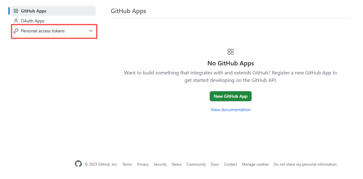 - 页面左侧导航栏找到「Developer settings」(开发者设置)