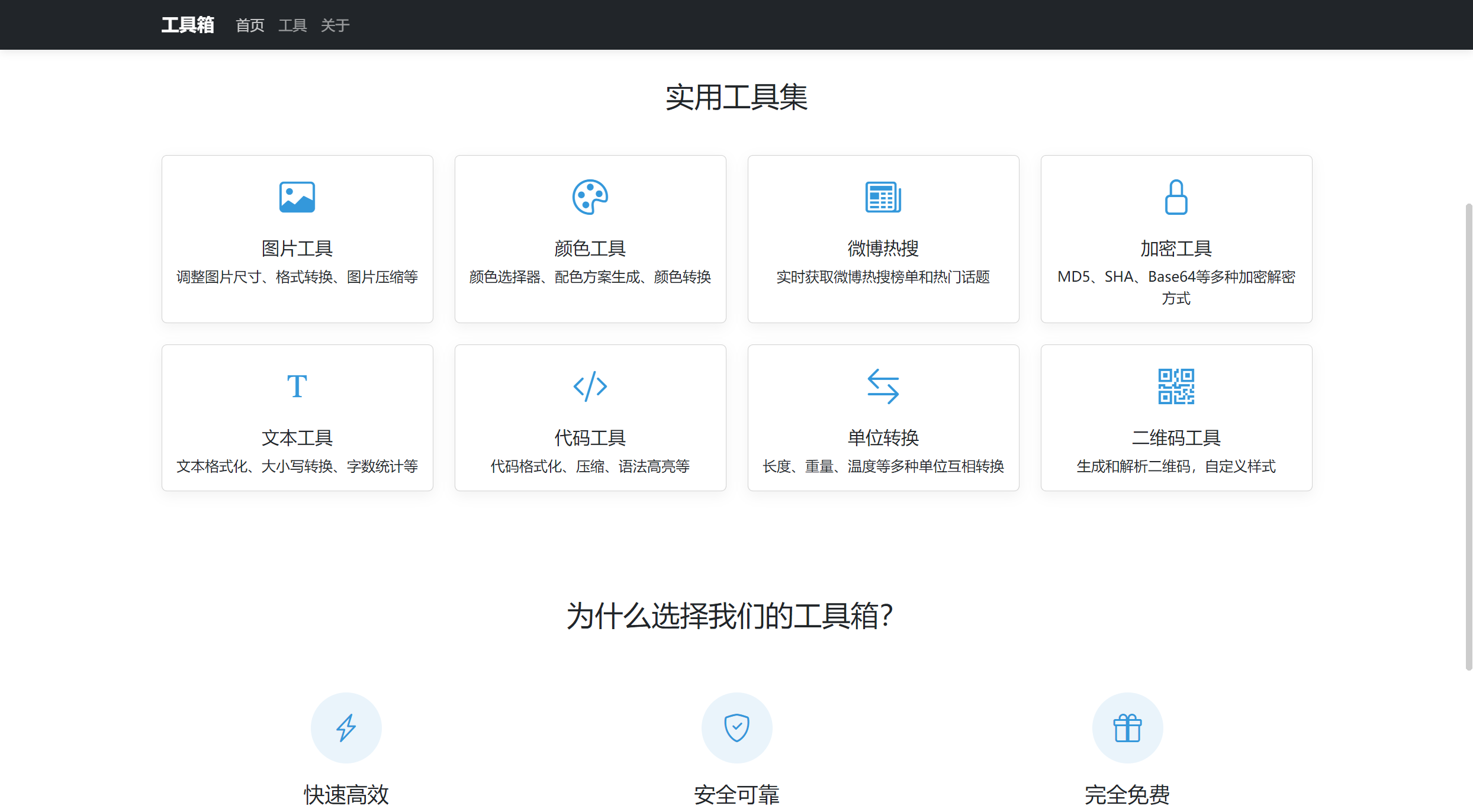 - 二维码工具:可生成包含文本或 URL 的二维码,支持调整大小并下载。