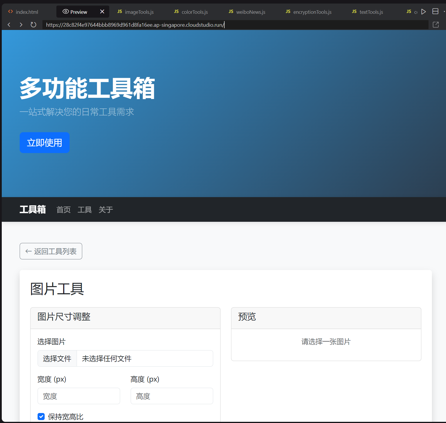 - 图片工具:支持图片上传、尺寸调整(保持宽高比),并可直接下载处理后的图片。