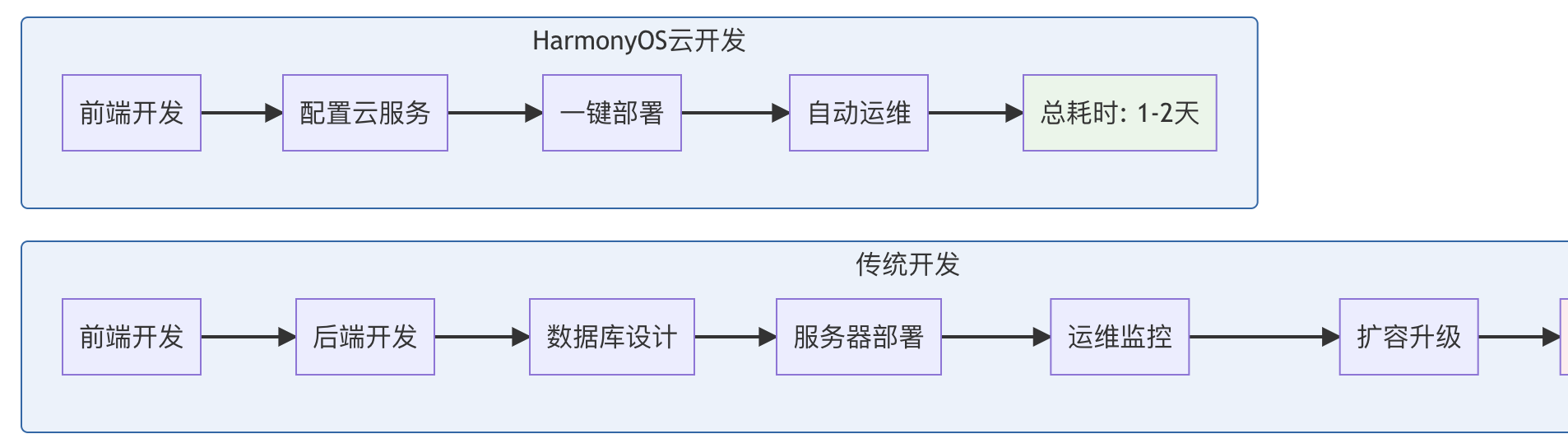 HarmonyOS云开发采用前后端一体化架构,开发者无需关注服务器运维,专注业务逻辑: