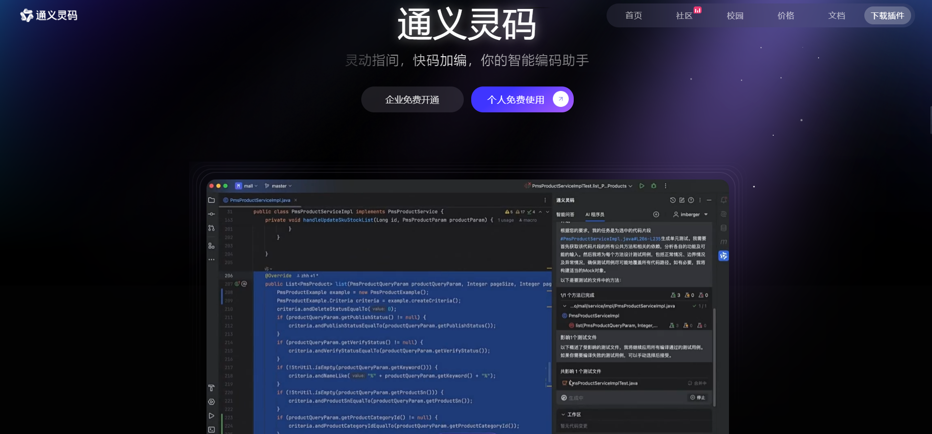 通义灵码个人版全面免费为开发者提供智能编码能力,个人专业版当前处于限免期,所有开发者均可使用更多专业版本的能力。