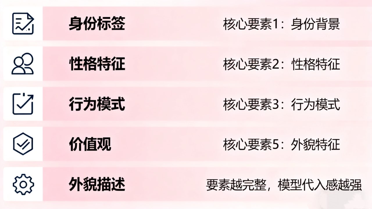 三、📌 核心要素:5 个维度构建 “立体角色”