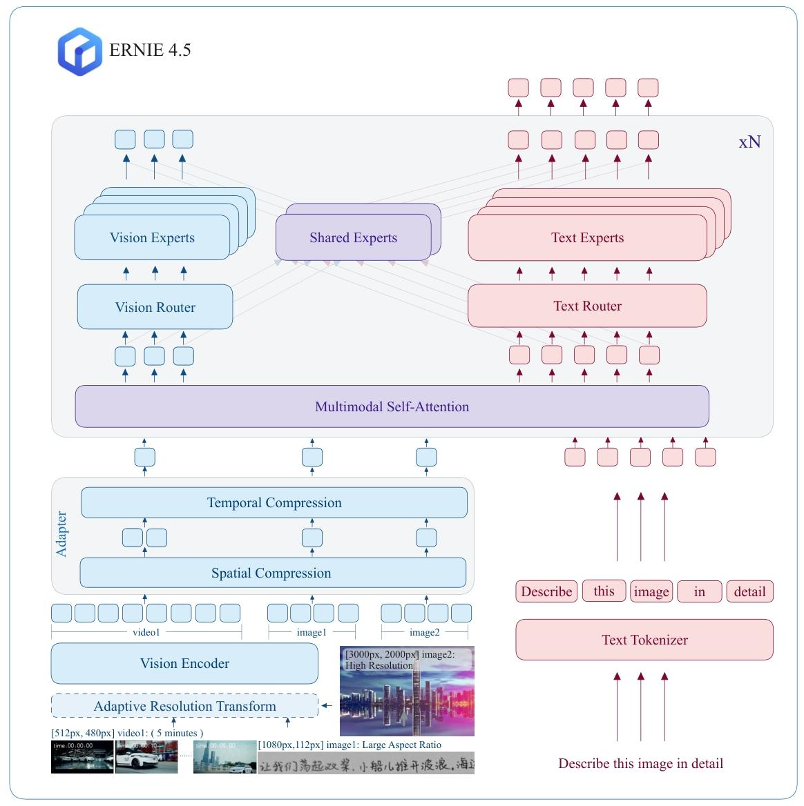 文心4.5还引入了一种模态感知专家分配策略,其中视觉专家仅包含文本专家的三分之一参数,从而提高了视觉信息处理的效率。