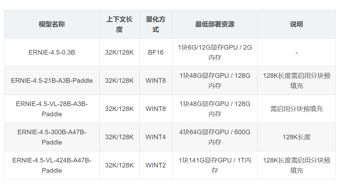 ERNIE4.5 部署配置要求 | |