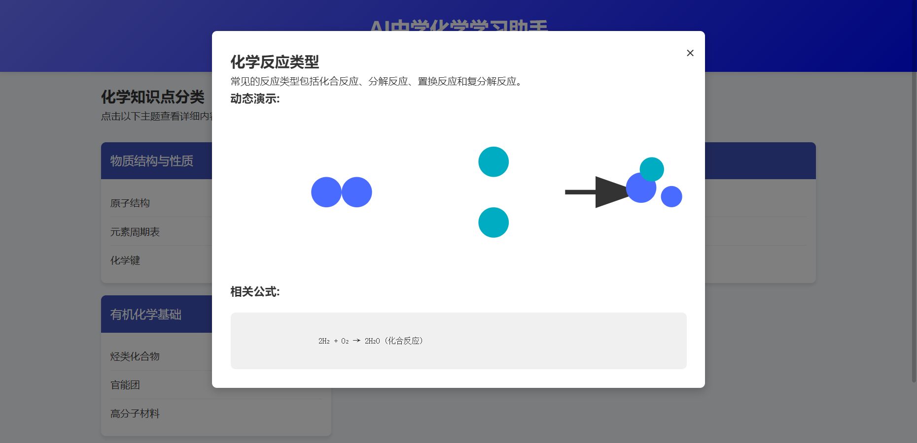 7、很快的就生成了一些常见化学反应案例动画,更加直观,方便教学实践