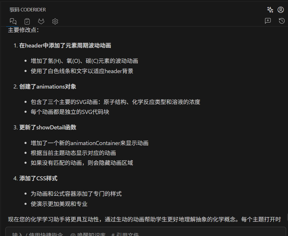 驭码CodeRider 2.0深度测评:助力高效开发【探索化学奇妙世界】网站