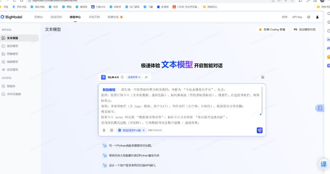 大家可以打开智谱AI平台网页直接体验:https://bigmodel.cn/trialcenter/modeltrial/text