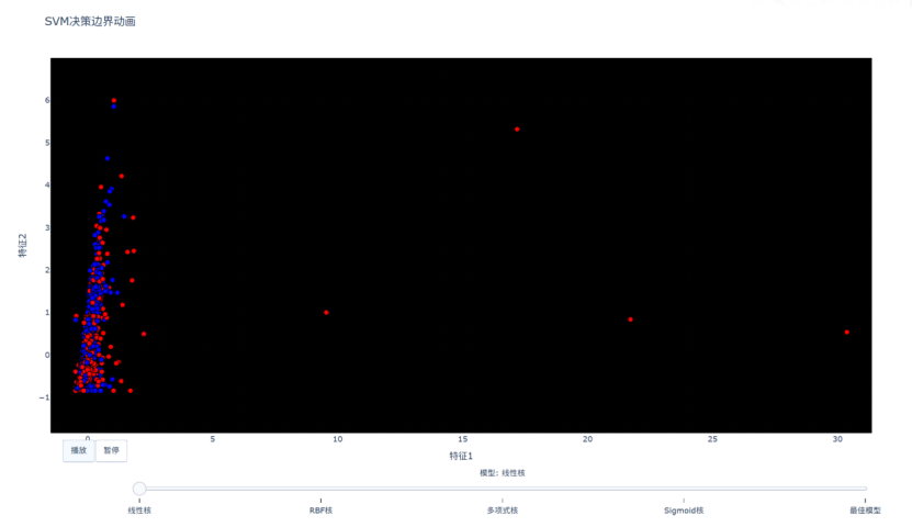 4. 动画效果:动态展示不同核函数的决策边界变化,这种动态视角比静态图表能提供更多信息。