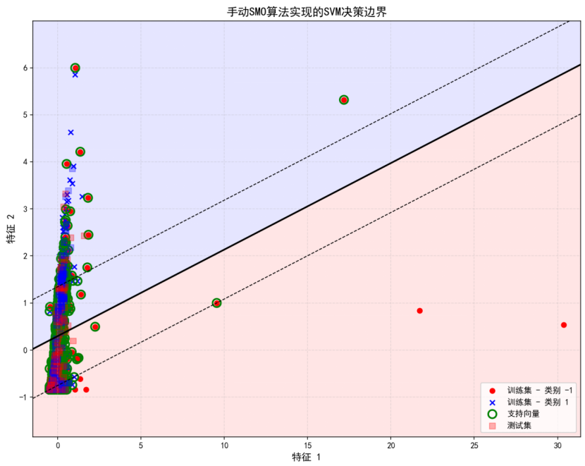 2. 优化SMO算法:当前实现的是简化版SMO,未来可以加入完整的启发式变量选择策略,进一步提高收敛速度。