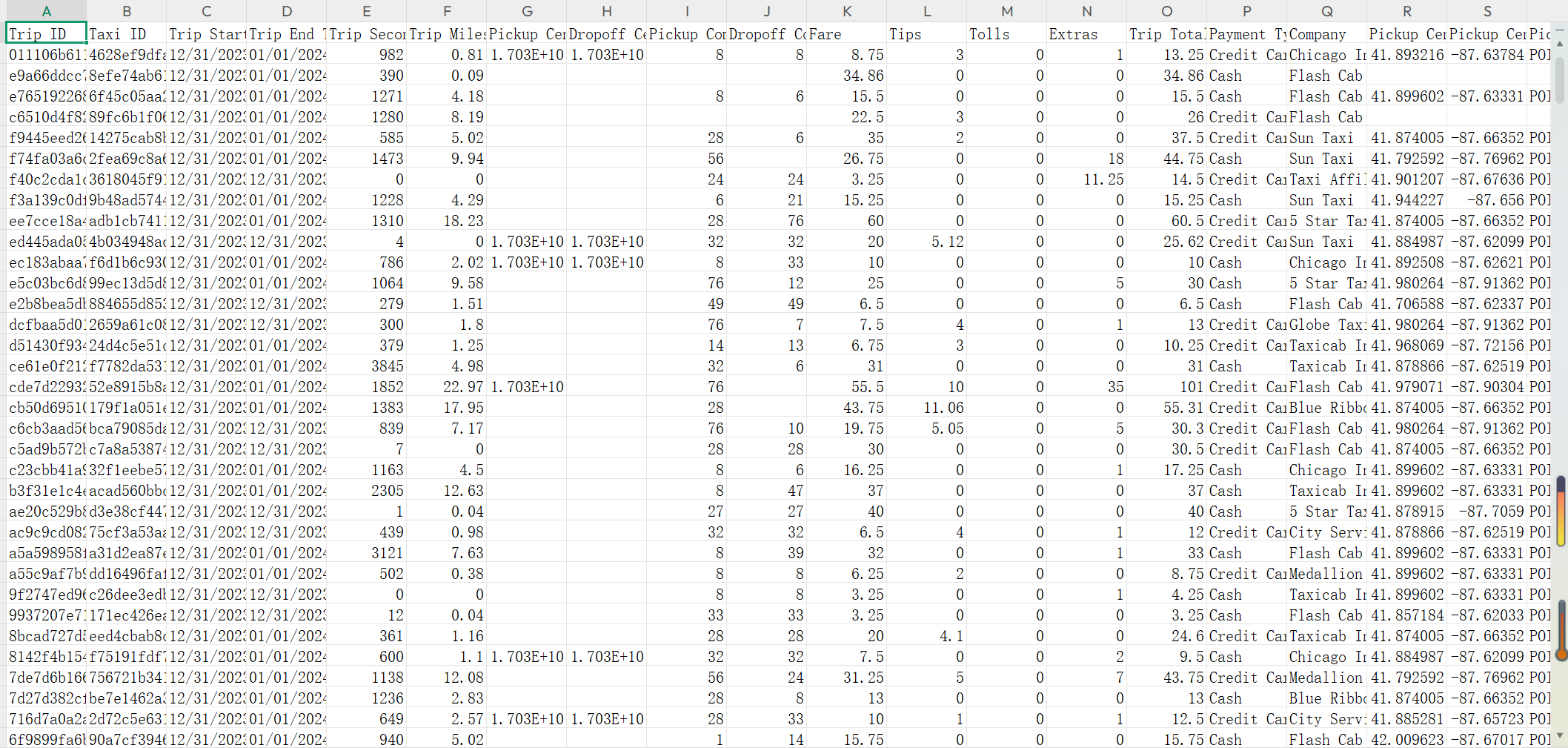 数据集:Chicago Taxi Trips Dataset (2023)-----包含芝加哥出租车出行记录