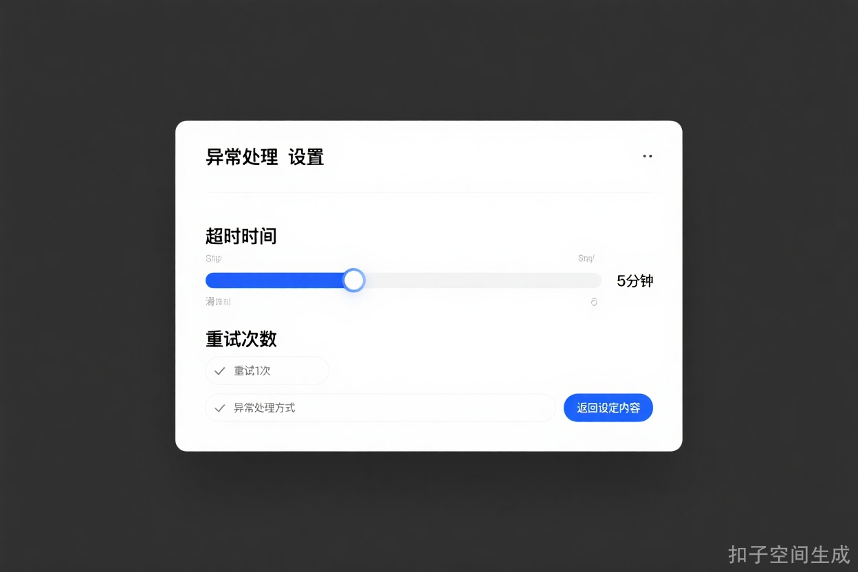 图3:异常处理参数配置界面,显示超时时间、重试策略和异常分支设置