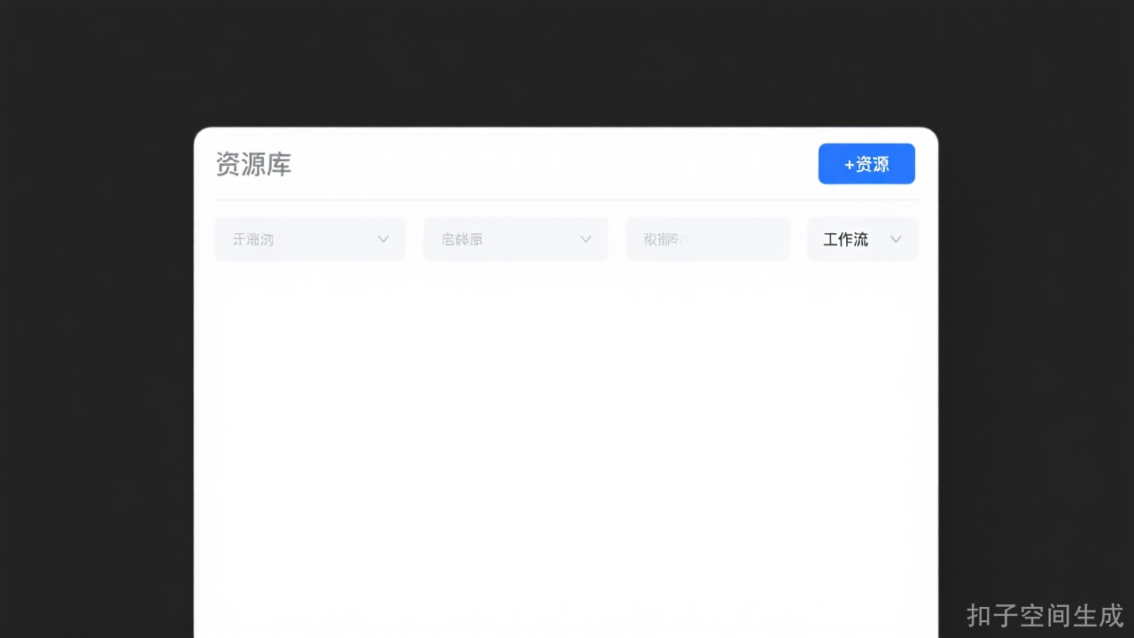 - 创建资源:在资源库页面右上角点击**+资源**,选择工作流。