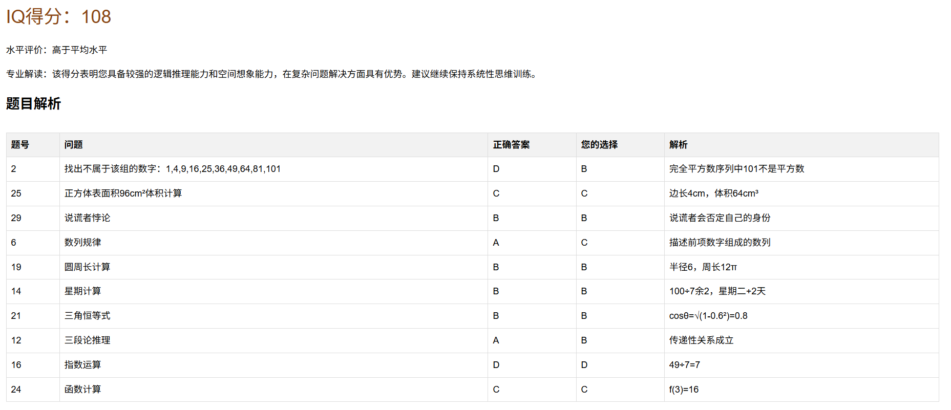 question: '找出不属于该组的数字:1, 4, 9, 16, 25, 36, 49, 64, 81, 101',
