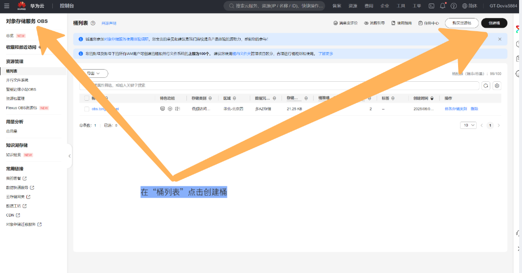 (1)搜索“桶列表”即可,点击创建
