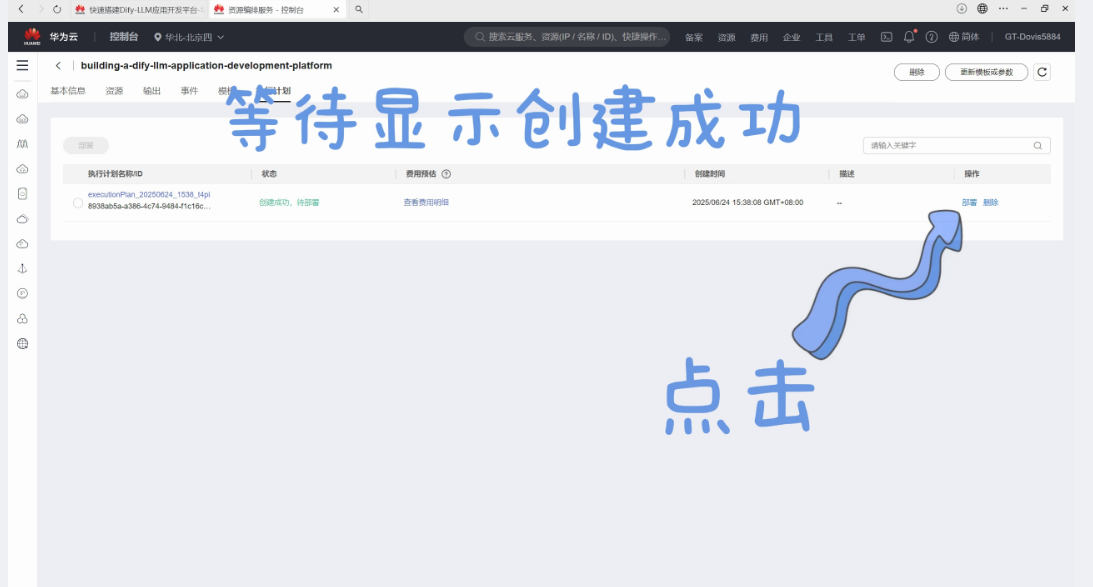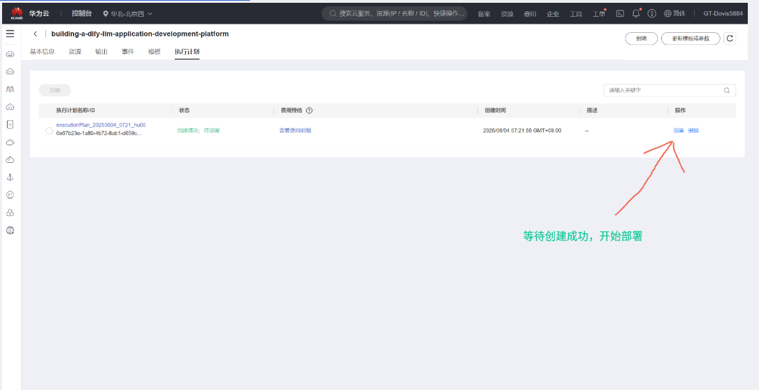 (7)待创建成功,开始部署,执行计划