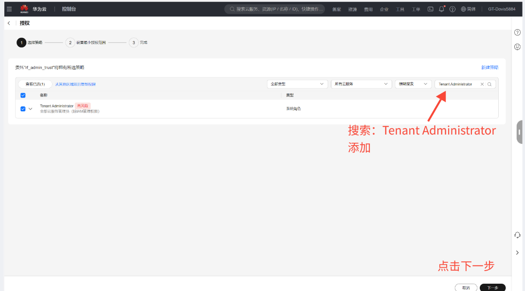 (4)搜索:Tenant Administrator 这个权限添加