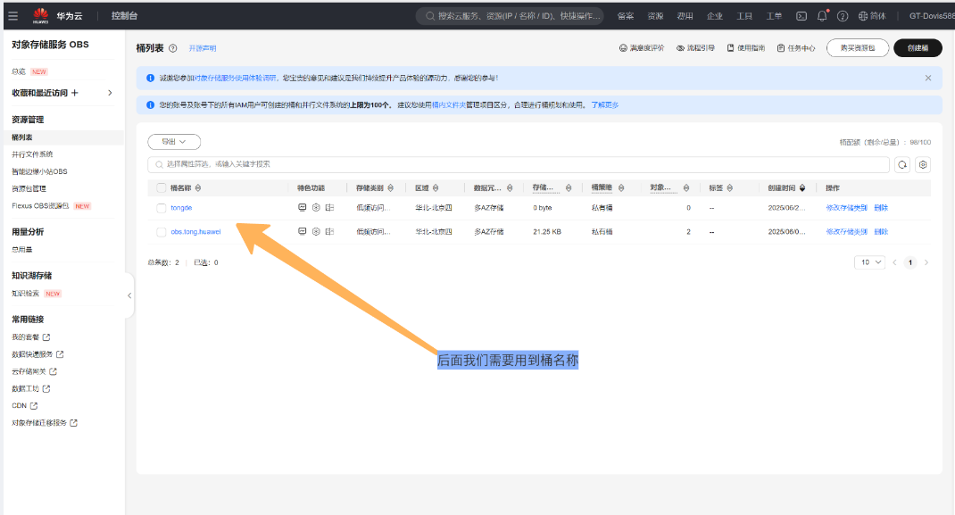 (3)我们后面需要用到桶名称
